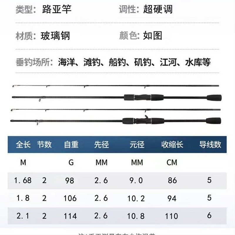 超轻硬玻璃钢M调直柄路亚竿水滴轮兼容溪流淡水野钓新手适用
