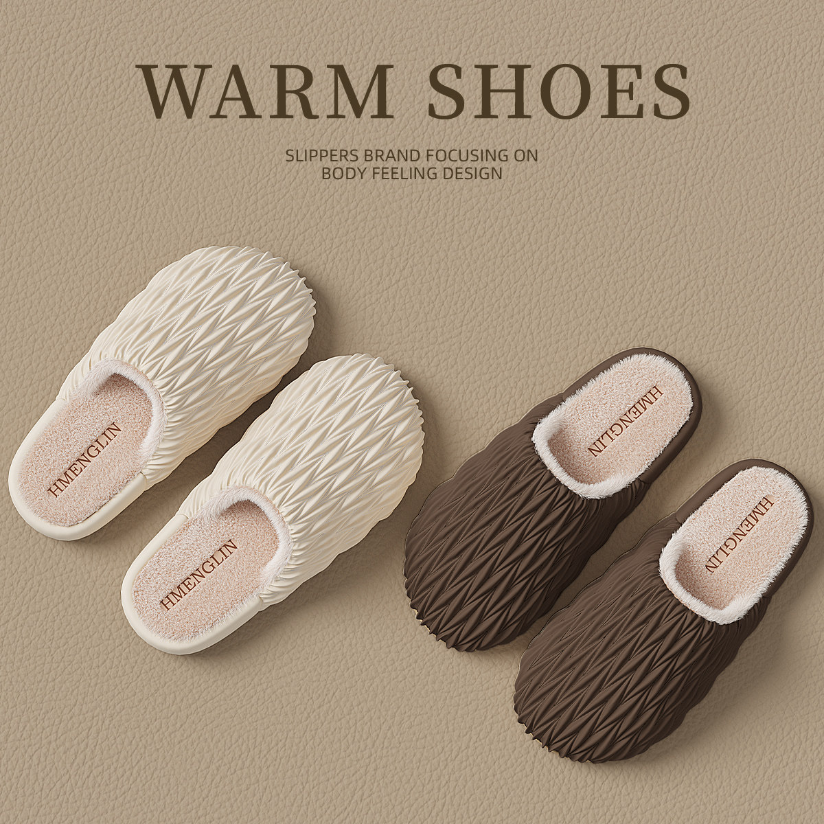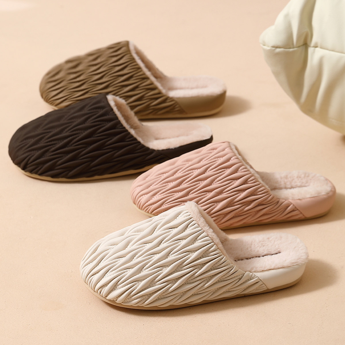 朴西棉拖鞋女士秋冬季厚底简约保暖室内居家用软底防滑情侣棉拖男