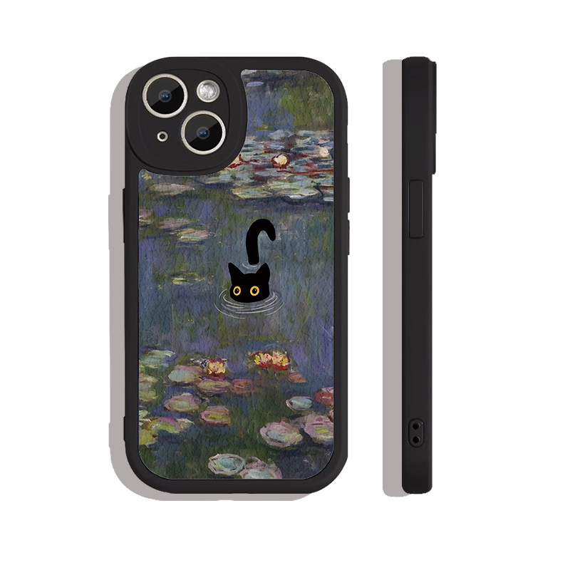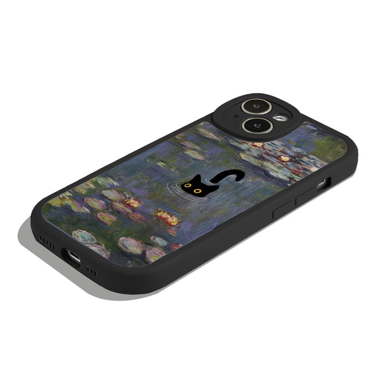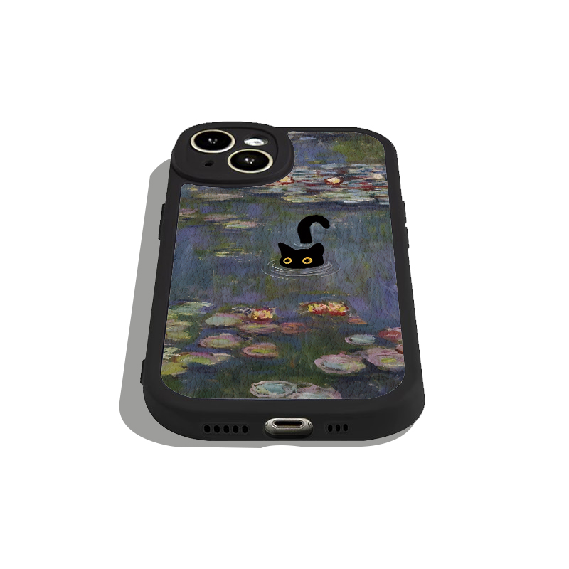 油画中走出来可爱黑猫黑色小羊皮手机壳适用苹果17nova14华为p70/mate70小米15reno14vivo30荣耀300iPhone15
