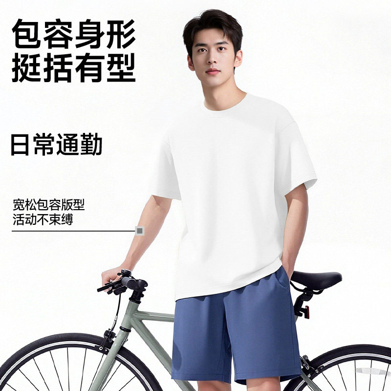 新疆棉300g重磅纯棉短袖t恤男女纯色圆领宽松厚实不透打底衫体恤