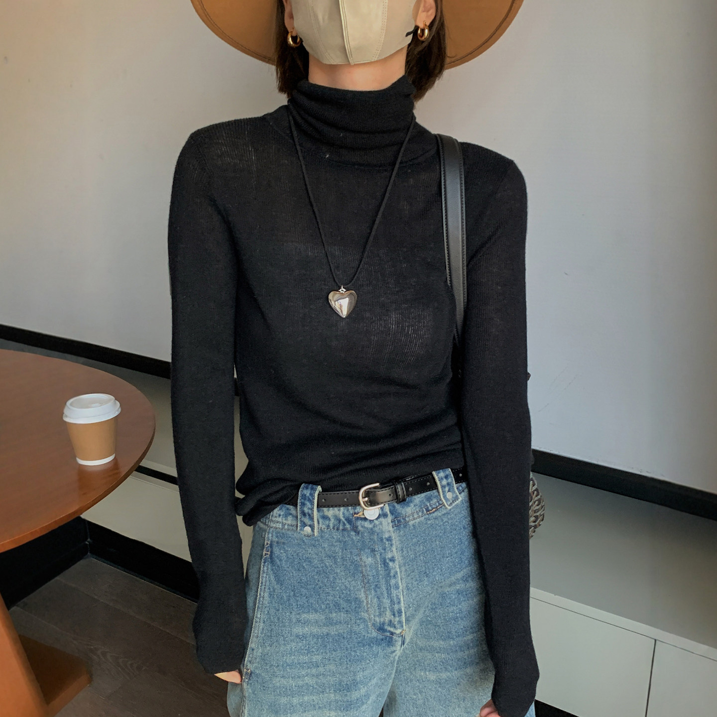 三福打底衫2025新款秋冬季保暖小中领毛衣无缝内搭上衣女装504415