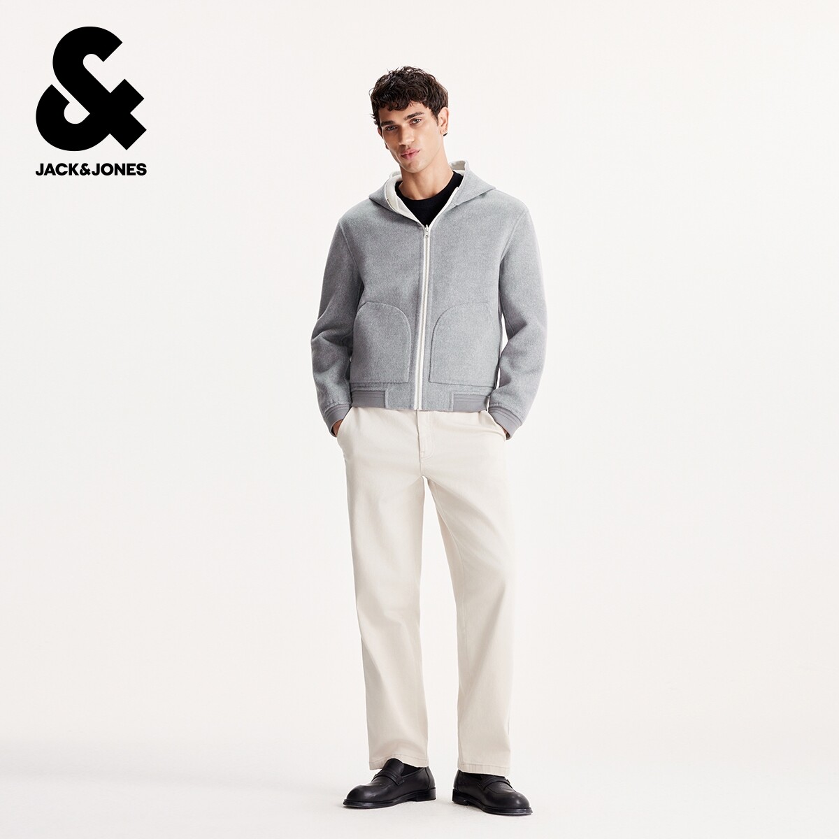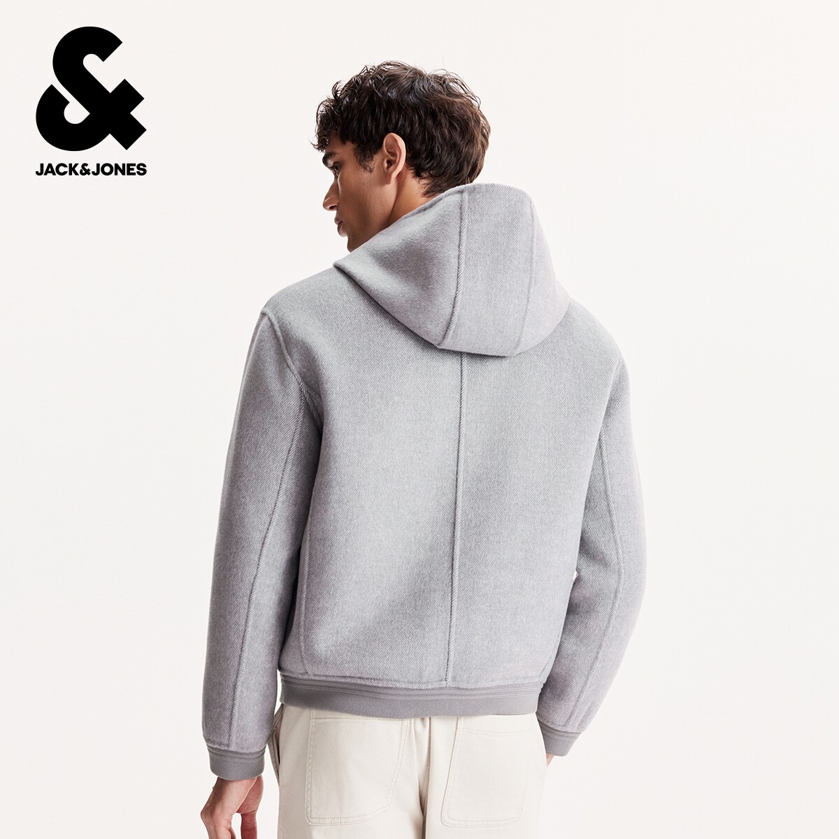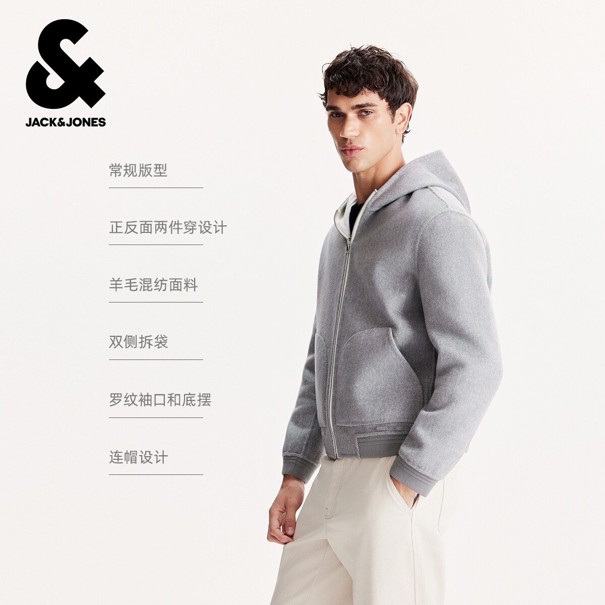 杰克琼斯男装2025年春秋季新款外套百搭连帽正反两面穿毛呢大衣
