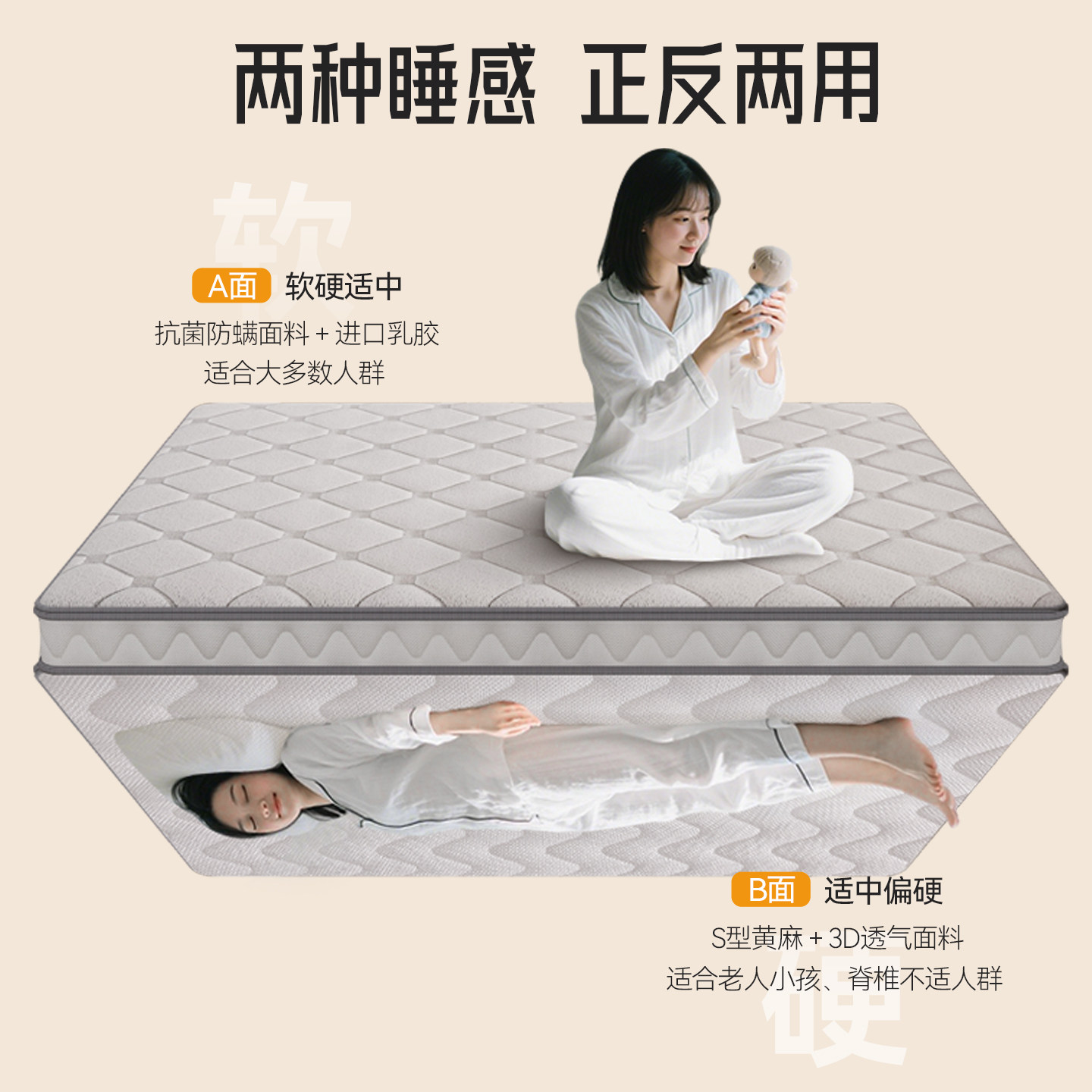 【林憩H1】大自然5A级山棕床垫护脊椎硬垫抑菌防螨黄麻竹原纤维垫