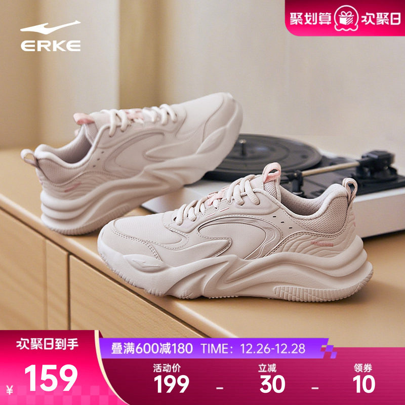 鸿星尔克漫心3女鞋秋冬新款运动鞋皮面软底休闲鞋百搭轻便老爹鞋
