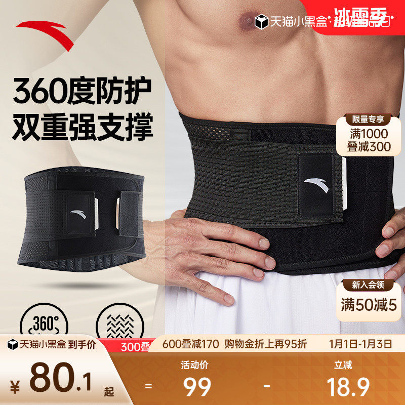 安踏运动护腰男士训练健身腰带深蹲跑步篮球举重专业束腰带护具