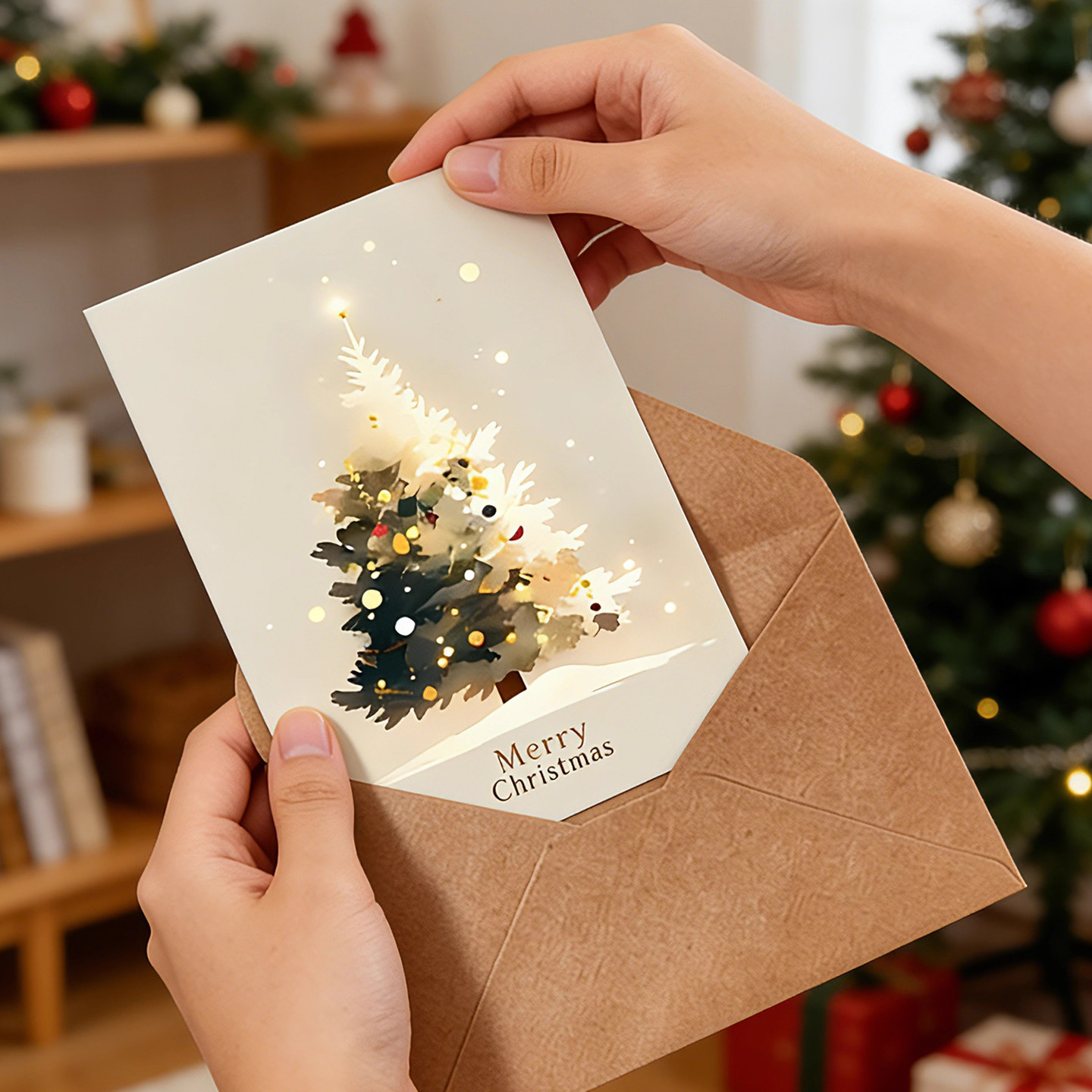 圣诞贺卡木雕烫金高级感手写信纸信封套装新年元旦节感恩节感谢卡明信片祝福卡平安夜花店礼物留言卡礼品卡