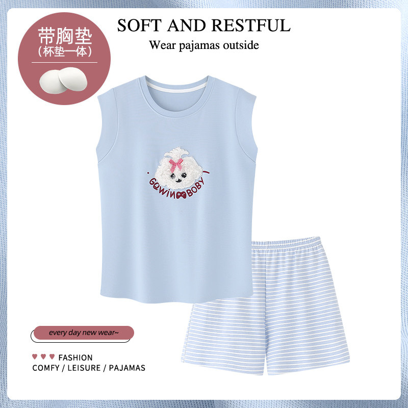 末里末【带胸垫】夏季无袖纯棉睡衣女背心短裤家居服宽松大码套装