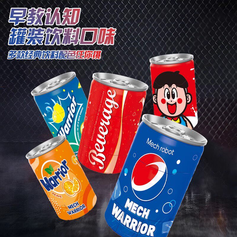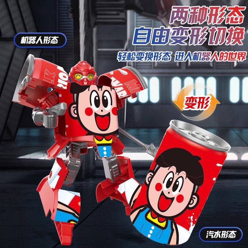 儿童变形玩具汽水易拉罐可乐饮料瓶装机器人男孩益智金刚礼物薯条