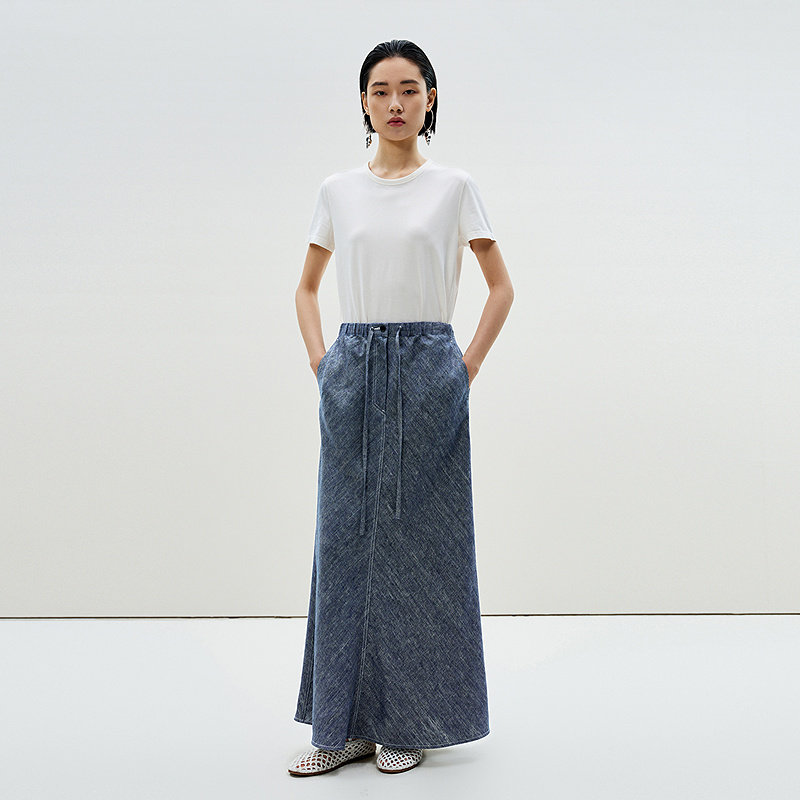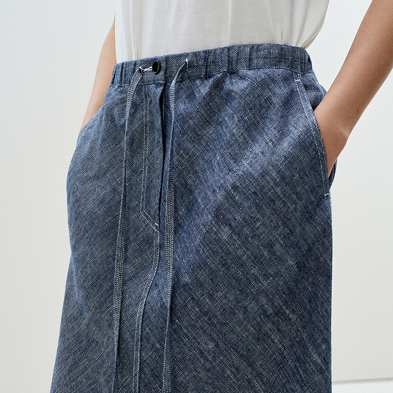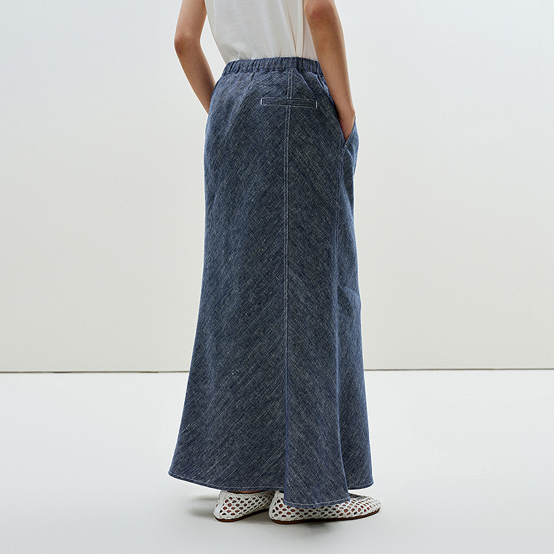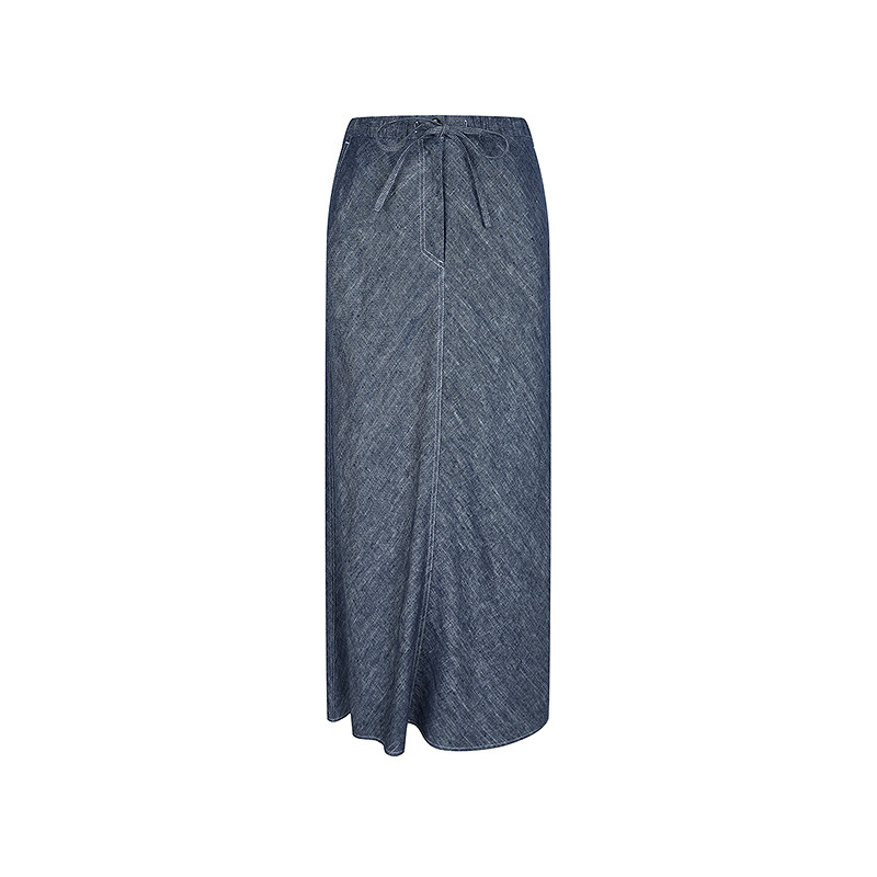 【0压系列】LESS春夏环保仿牛仔亚麻高腰A字长款半身裙2P4D10570