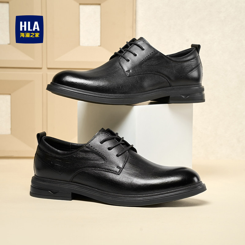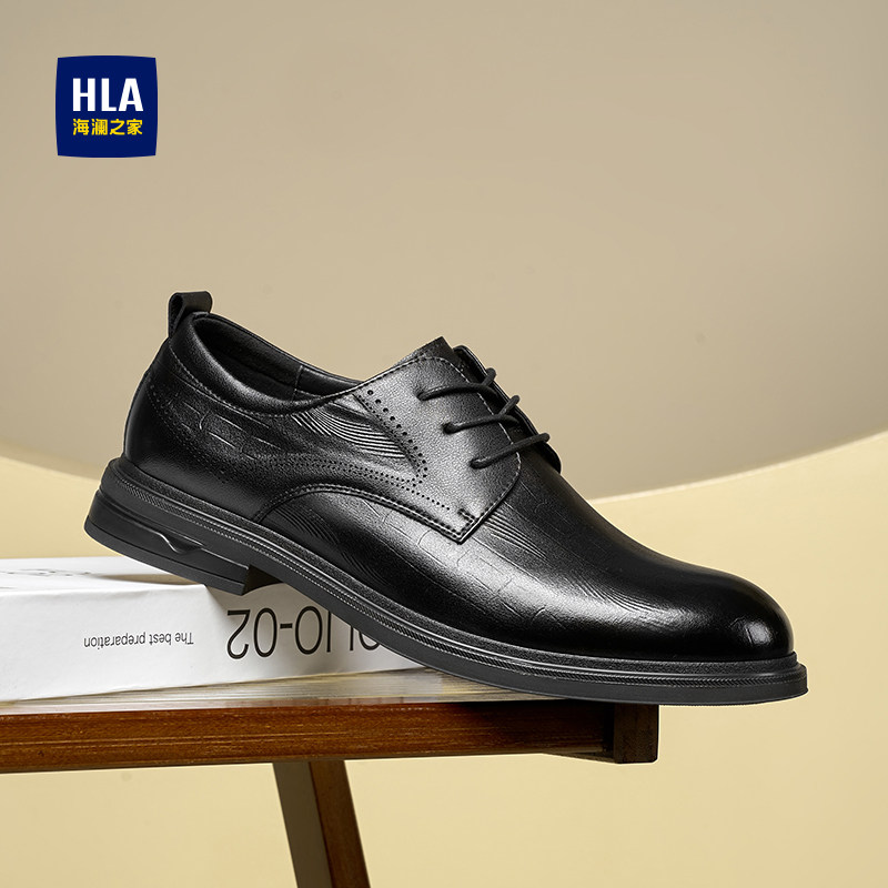 HLA/海澜之家男鞋新款秋季时尚英伦商务正装皮鞋压纹耐磨百搭男士