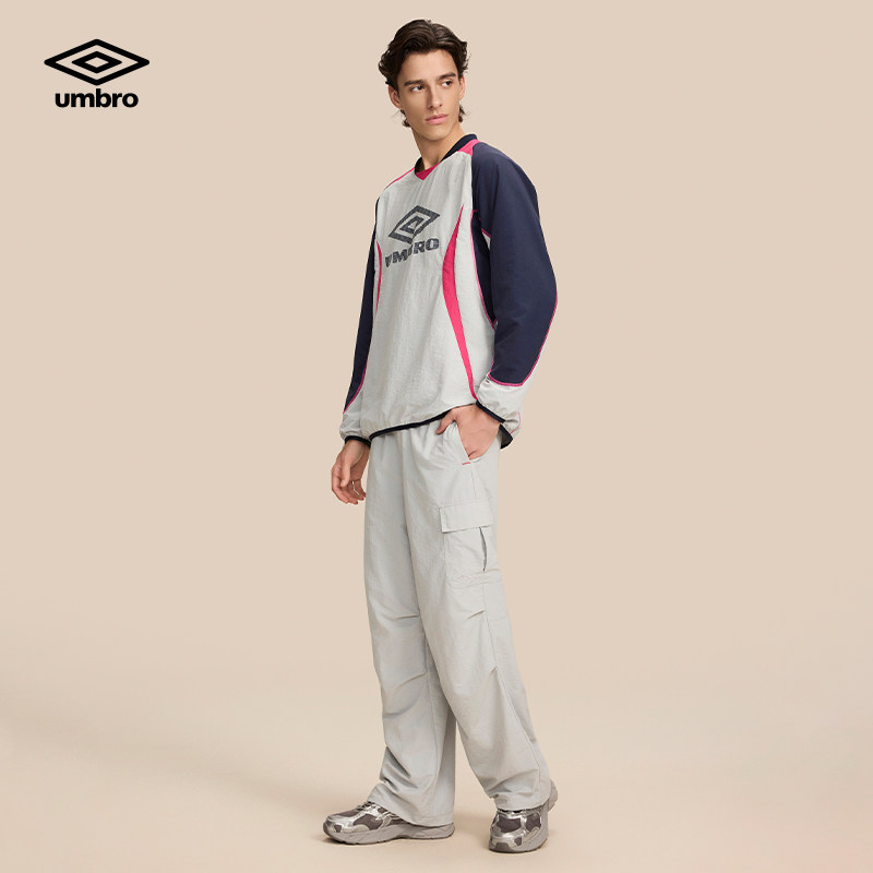 umbro茵宝官方长袖T恤衫春季男女同款足球BlokeCore风大LOGO拼接T