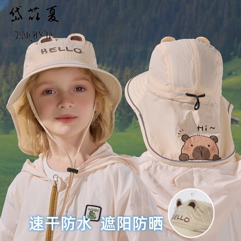 夏季儿童防晒套装大檐帽子男孩宝宝渔夫帽速干薄款女童披肩帽遮阳