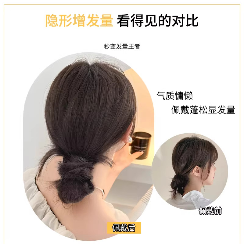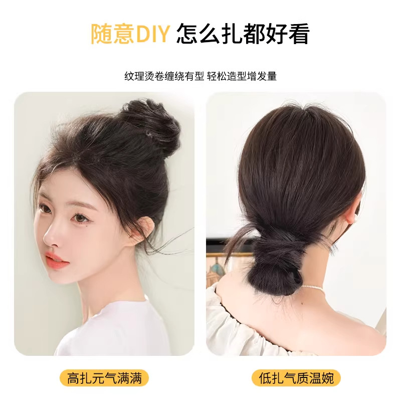自绕式丸子头发束假发辫子发圈仿真发假发包蓬松低扎马尾盘发神器