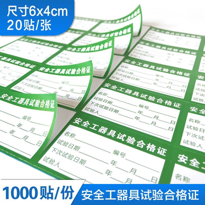 安全工器具试验合格证标签贴纸施工工器具安全工具试验合格证标识