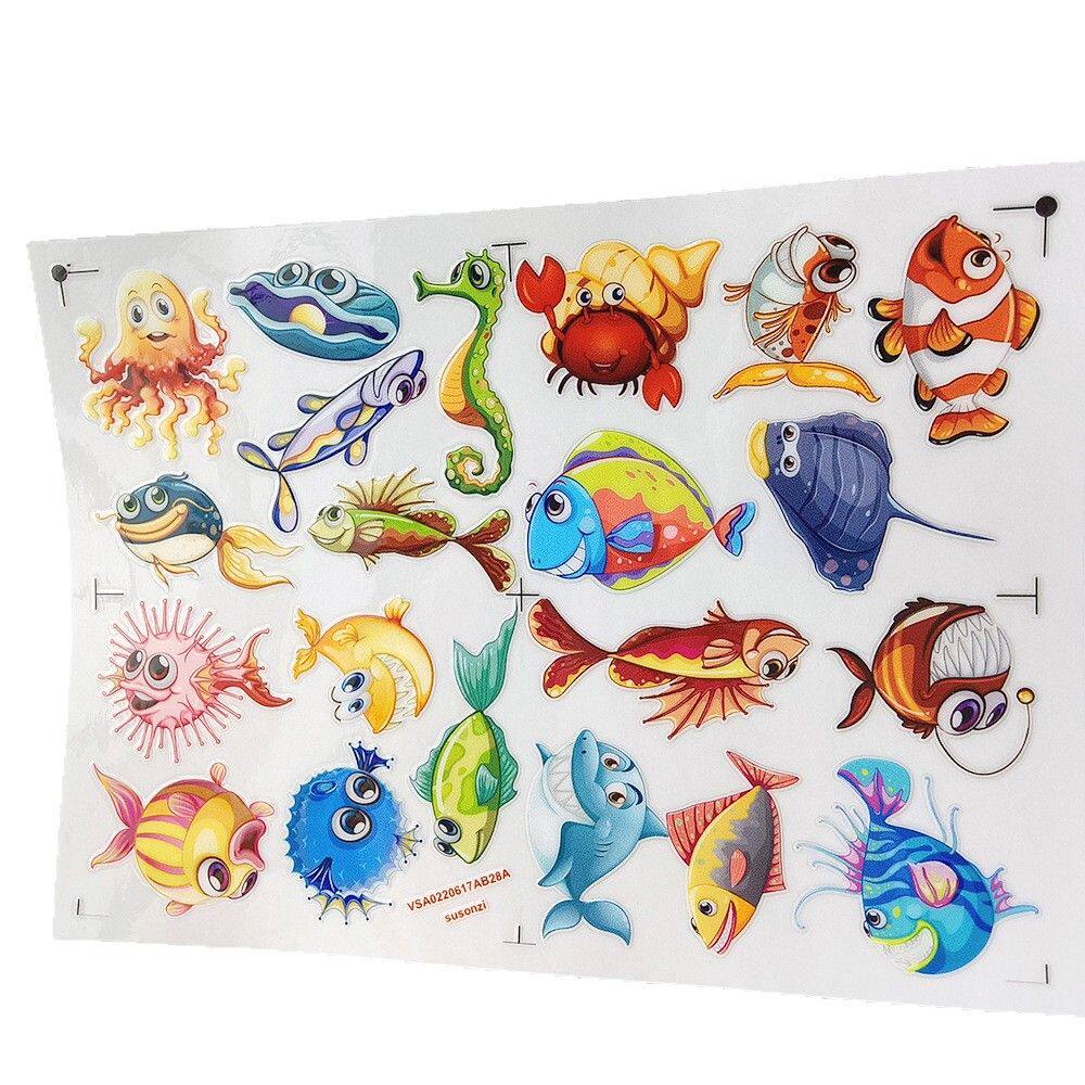 卡通海洋鱼镂空立体防水手帐笔保温水杯装饰UV转印贴纸水晶标定制