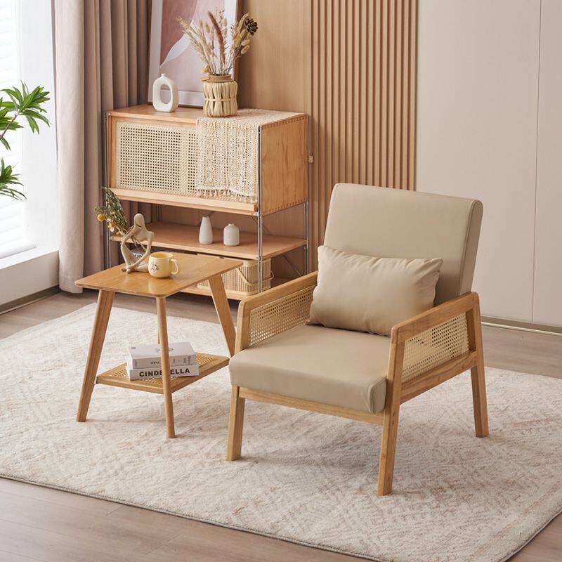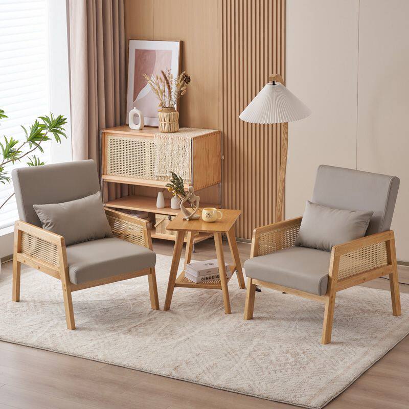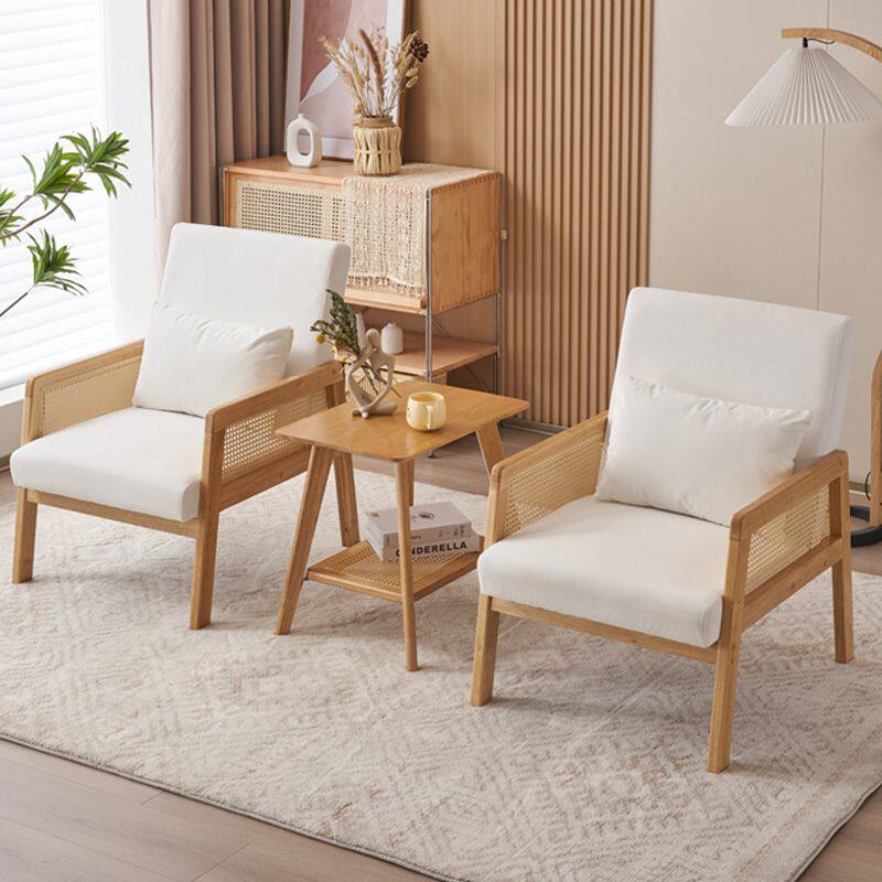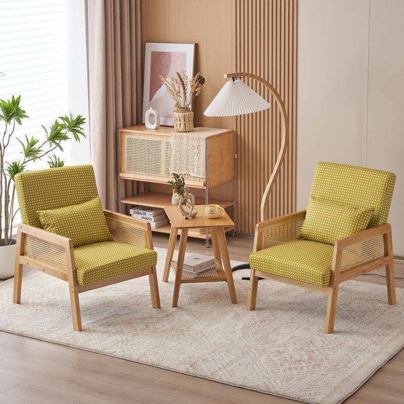 b北欧实木藤网休闲沙发椅单人茶几组合客厅简约布艺椅子奶茶店沙