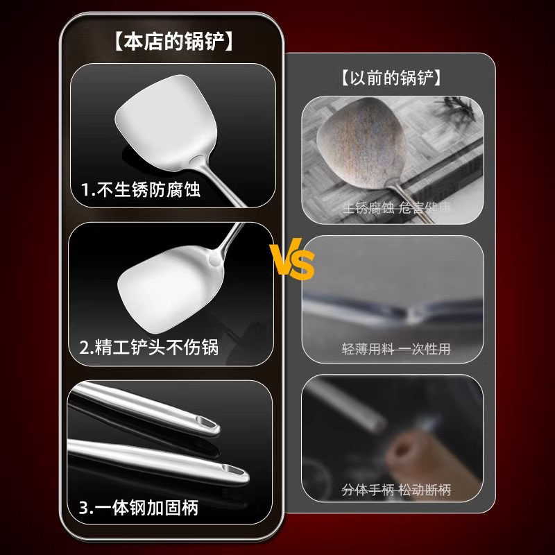 316不锈钢锅铲食品级家用厨房炒菜铲子厨师专用炒勺加厚锅铲套装