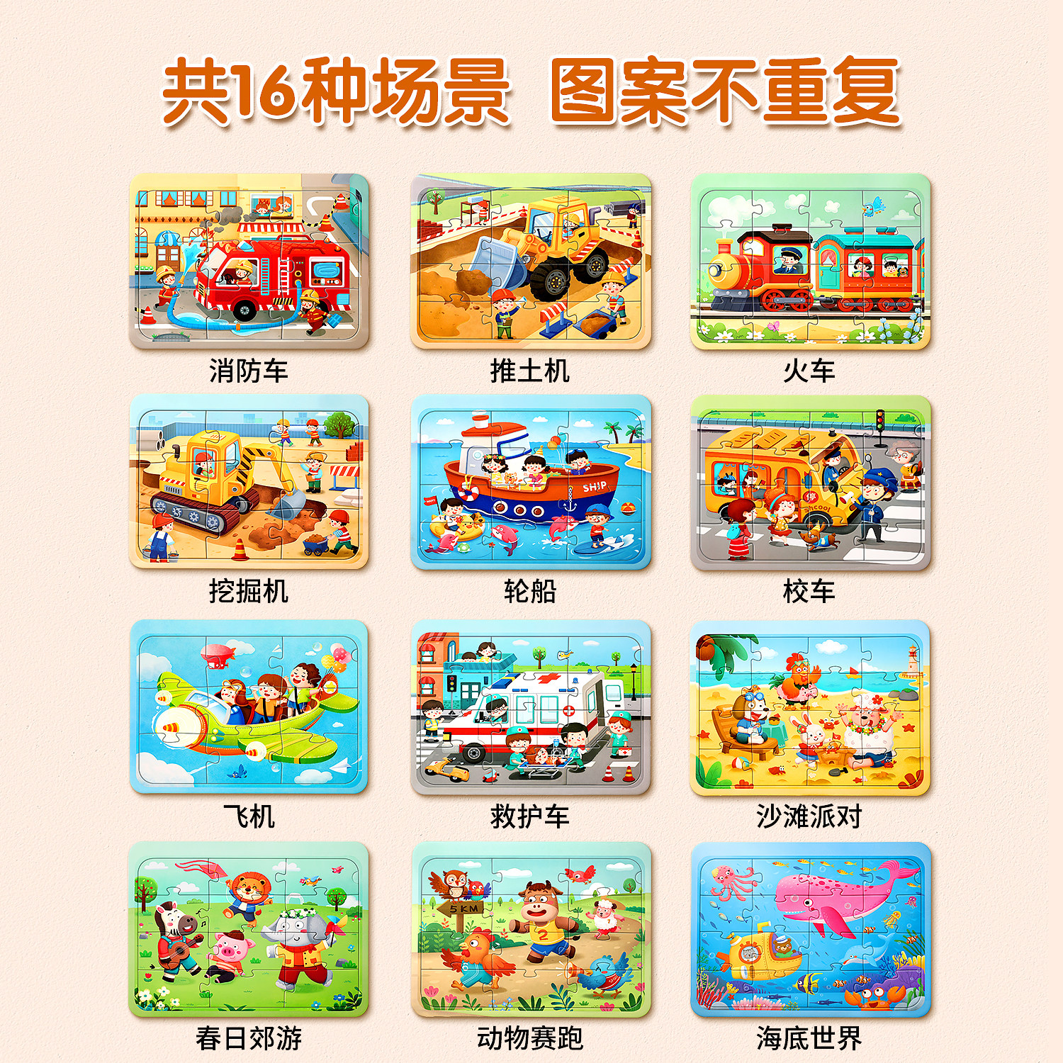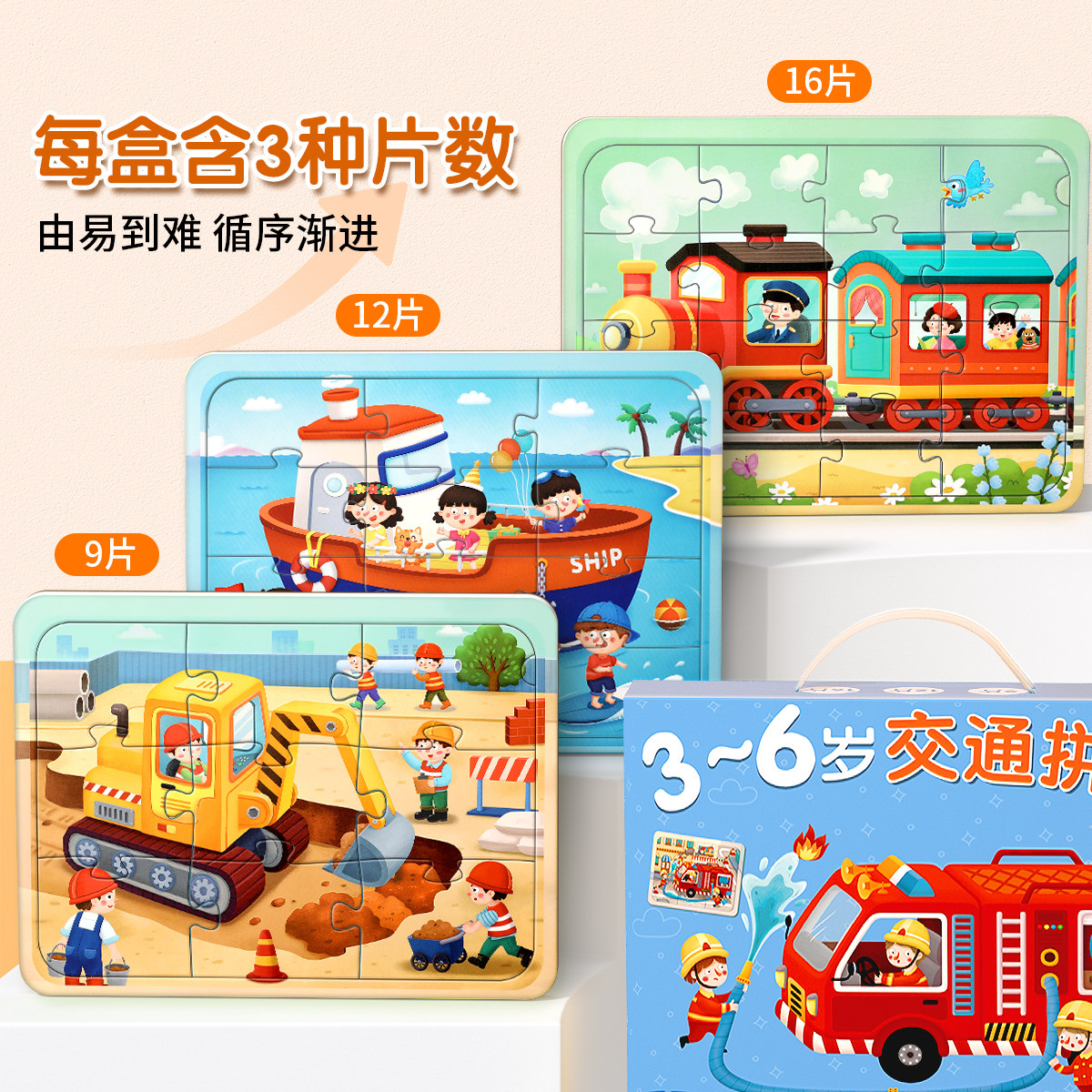 儿童拼图3到6岁益智工程车2宝宝幼儿三两男孩汽车女孩平图玩具