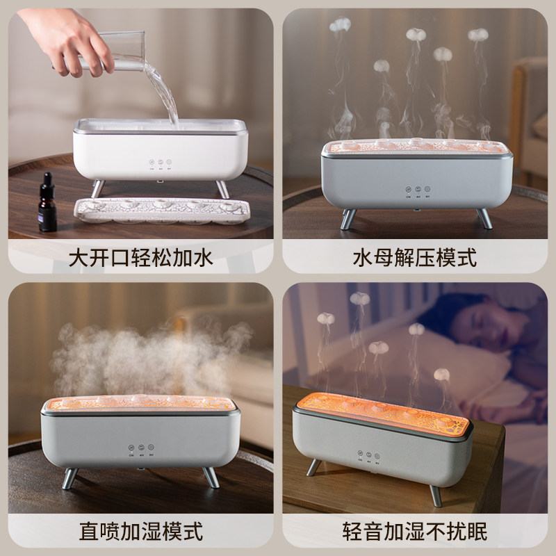 拾音水母香薰加湿器家用静音客厅卧室桌面大喷雾香薰精油高颜值摆件七彩氛围灯实用喷香机乔迁生日礼物送朋友
