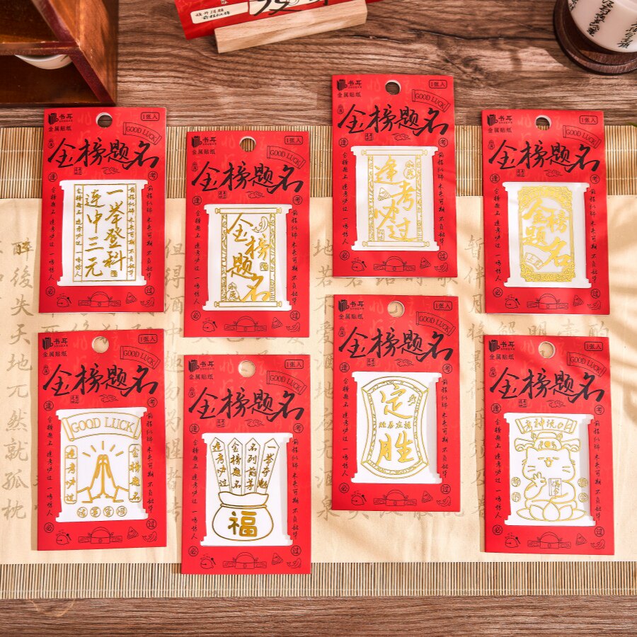 金榜题名系列金属贴纸书法文字镂空高颜值文创礼物中考高考毕业季考研上岸祝福装饰贴画手机平板电脑装扮可用