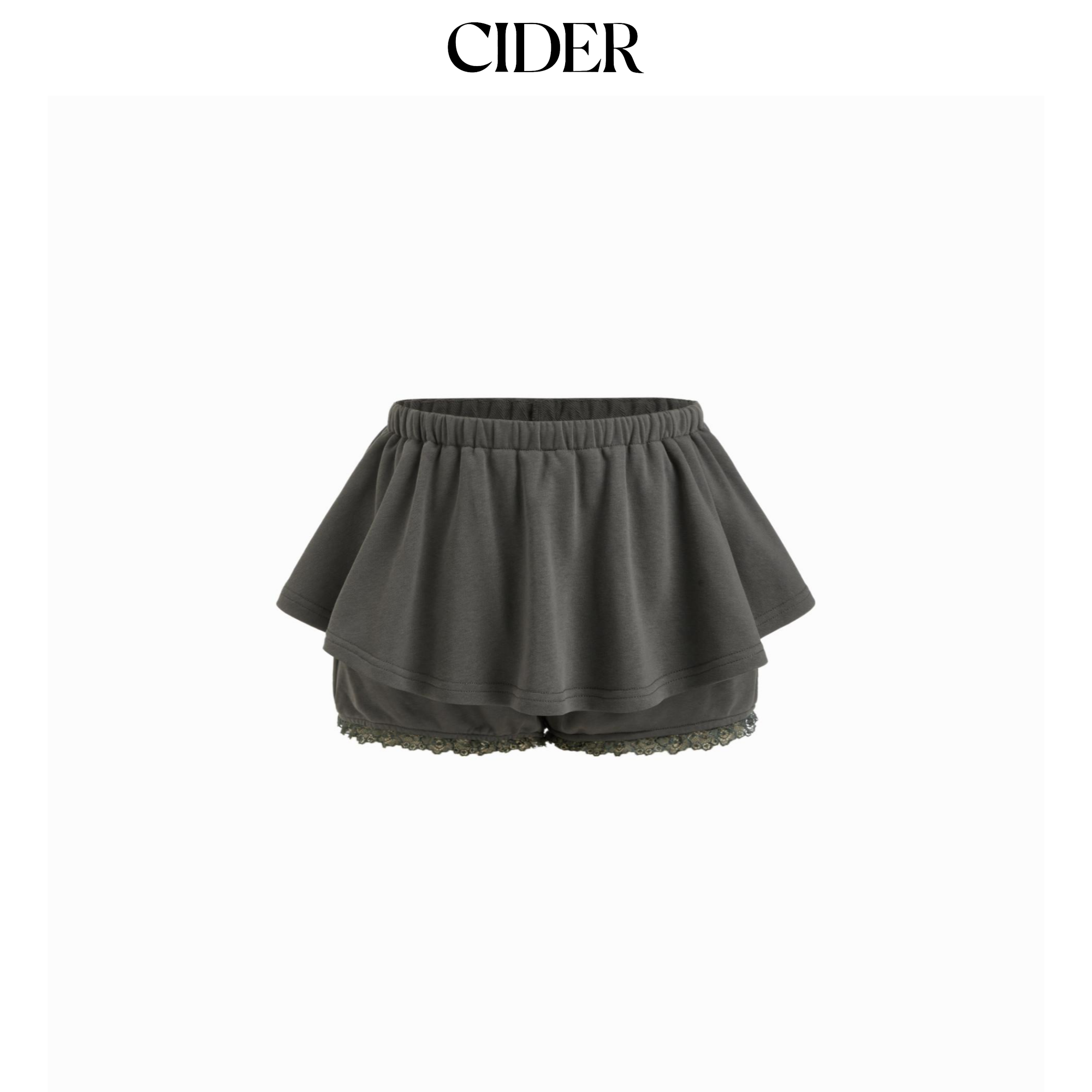 CIDER 夏季女装棉中腰蕾丝荷叶边迷你短裙裤 114750387