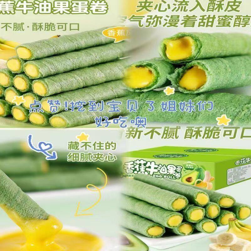 整箱90支香蕉牛油果蛋卷夹心蛋卷酥脆办公室宿舍解馋休闲零食好吃