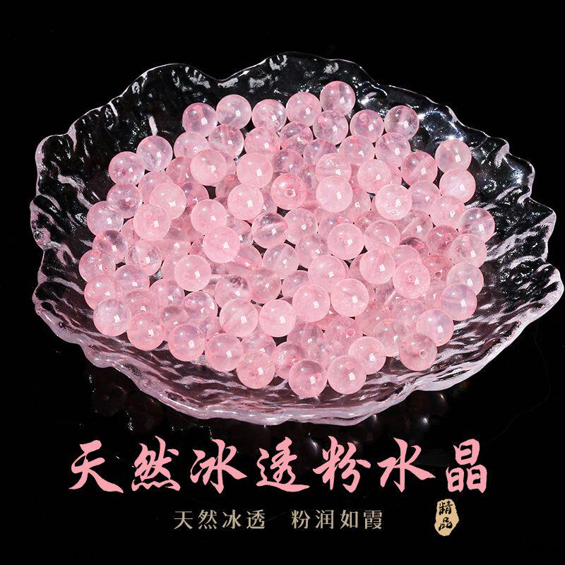冰种粉水晶散珠子粉晶串珠diy手工编织水晶手链材料配件包材料