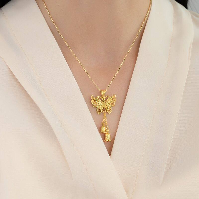 仿真五金结婚订婚拍照道具蝴蝶项链五件套首饰古法传承礼盒套装