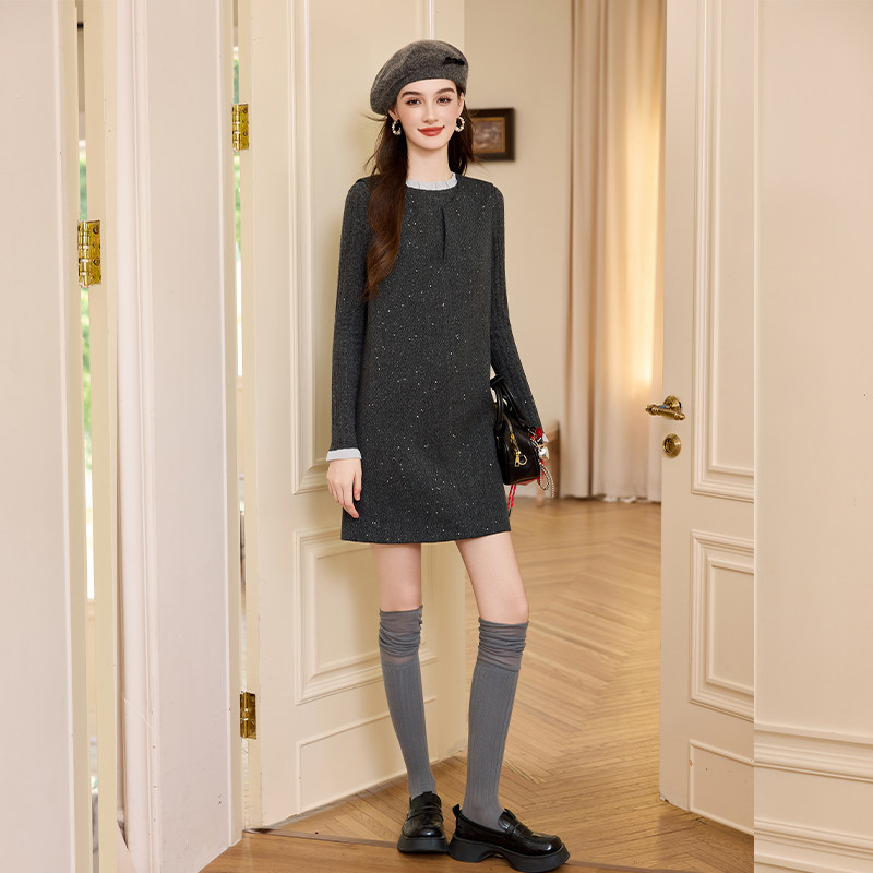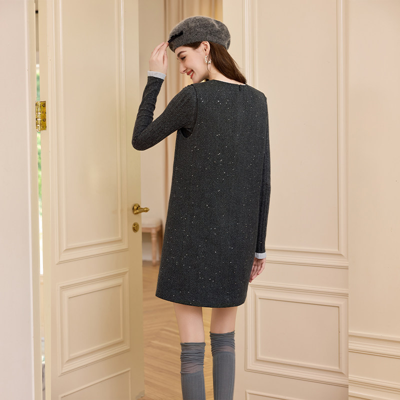 V领厚款 无袖背心裙 细闪面料