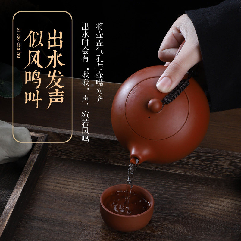 紫砂壶凤鸣壶朱泥壶泡茶壶功夫茶具大容量陶瓷壶朱泥大红袍西施壶