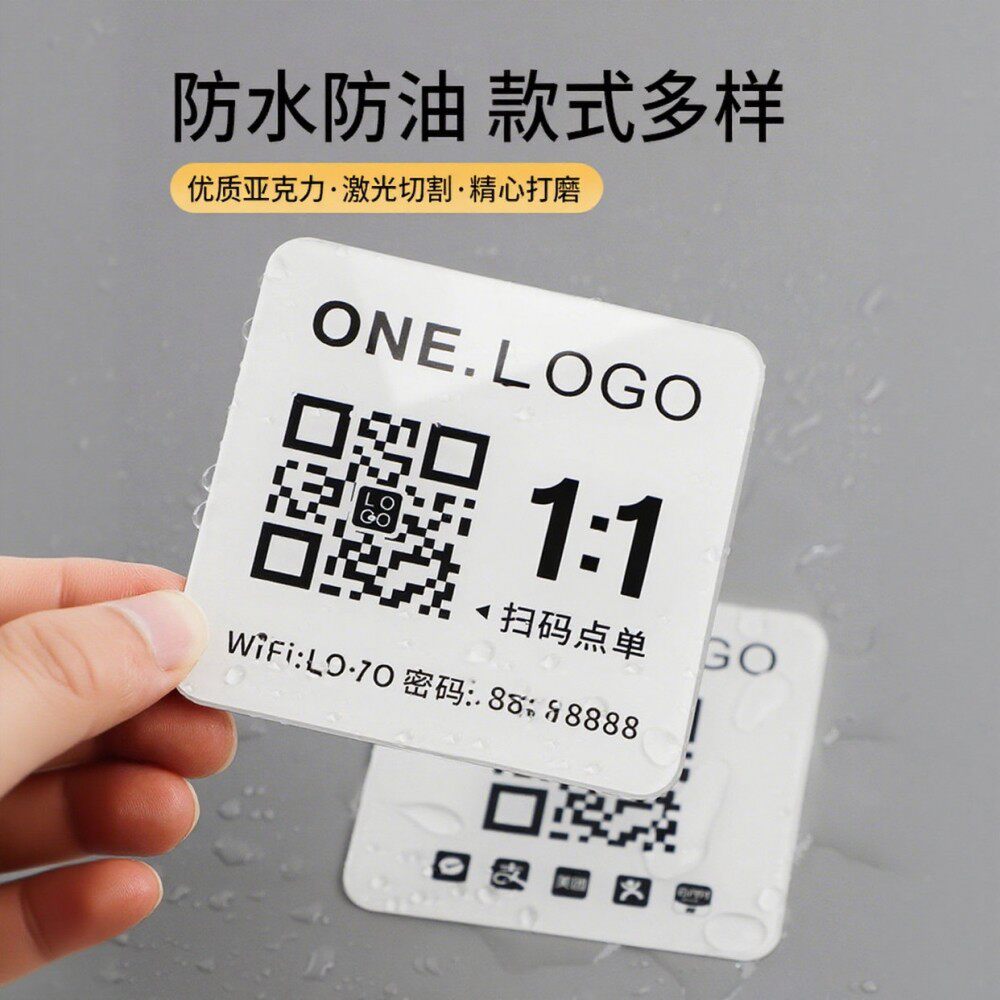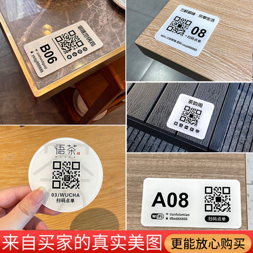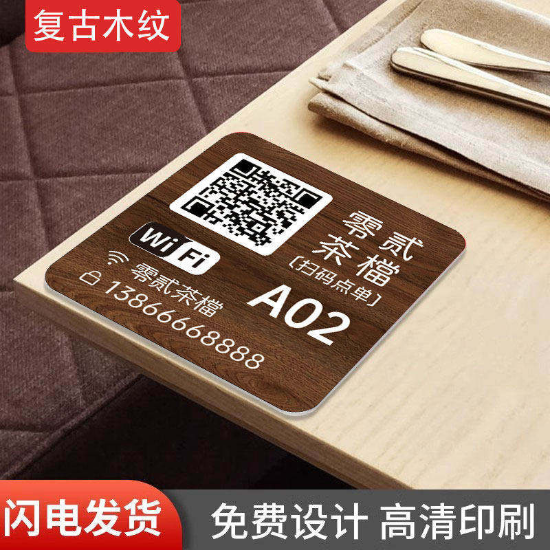 扫码点餐二维码桌贴亚克力饭店点餐桌牌饭店餐桌扫码点单餐饮店桌号牌定制小程序点菜下单防水wifi密码提示牌