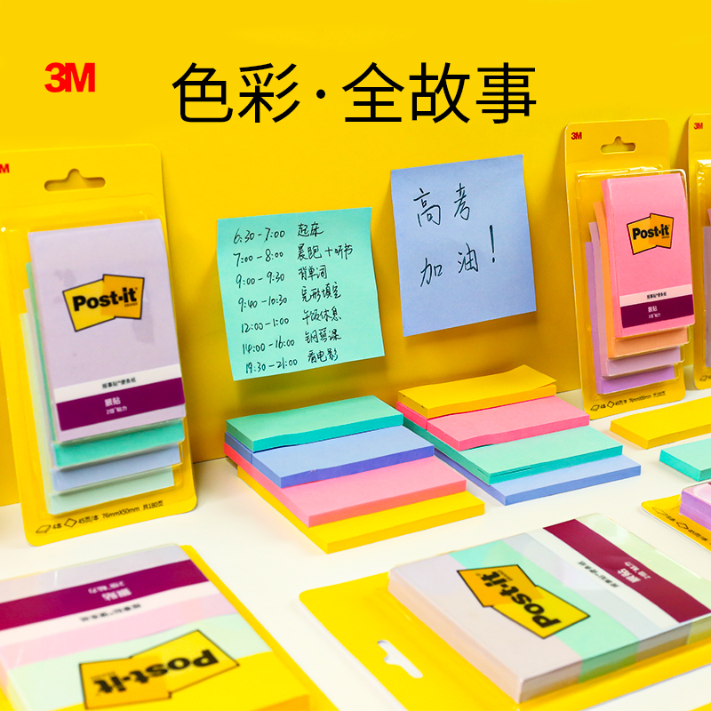 新品美国3M便利贴狠贴学生用便签彩色小本便签本Post-it便条纸本子记事贴可爱网红可撕办公文具n次贴