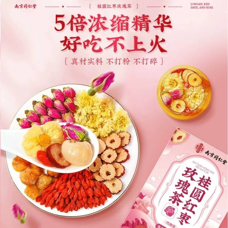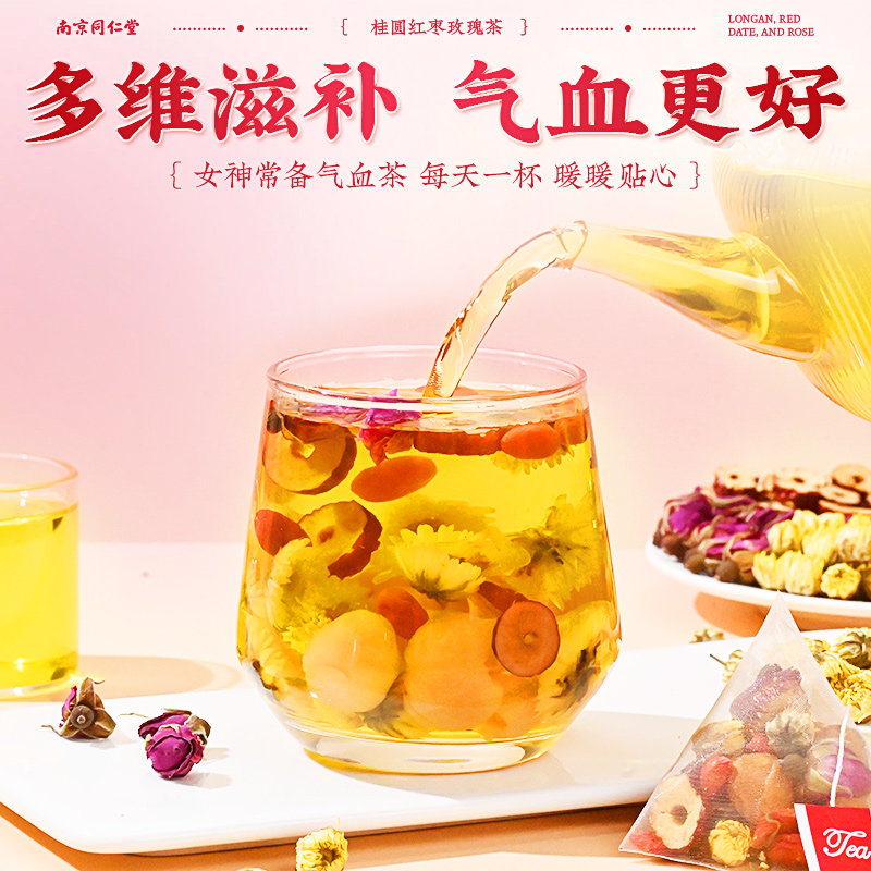 同仁堂红枣桂圆枸杞玫瑰花茶补气养血女人美容养颜调理气血养生茶