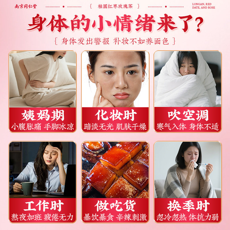 同仁堂红枣桂圆枸杞玫瑰花茶女生气血不足补气养血调理女人养生茶