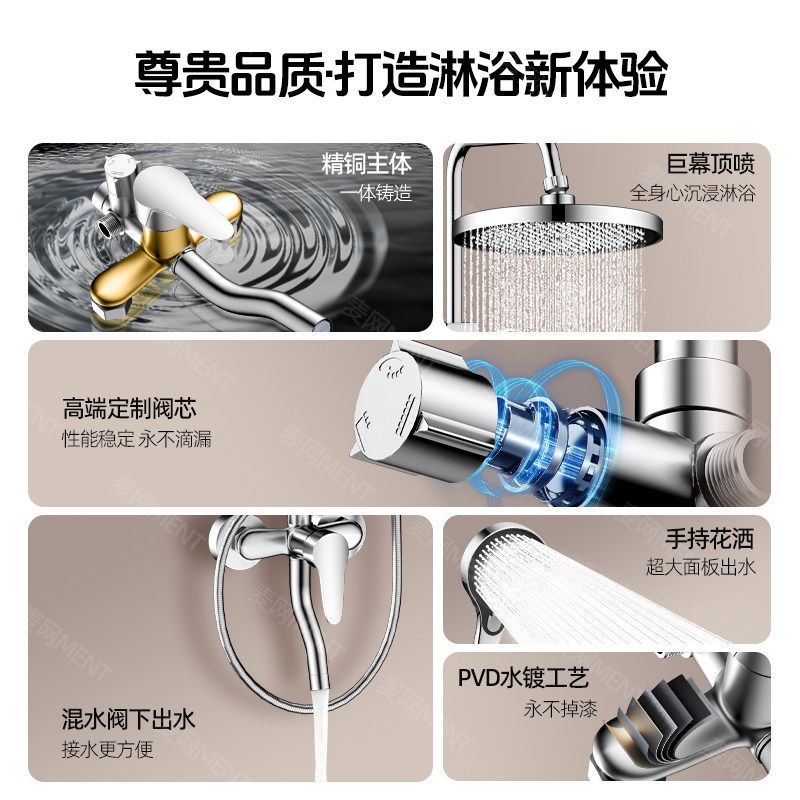 全铜淋浴花洒套装家用浴室增压大出水淋浴器卫生间洗澡一体式全套