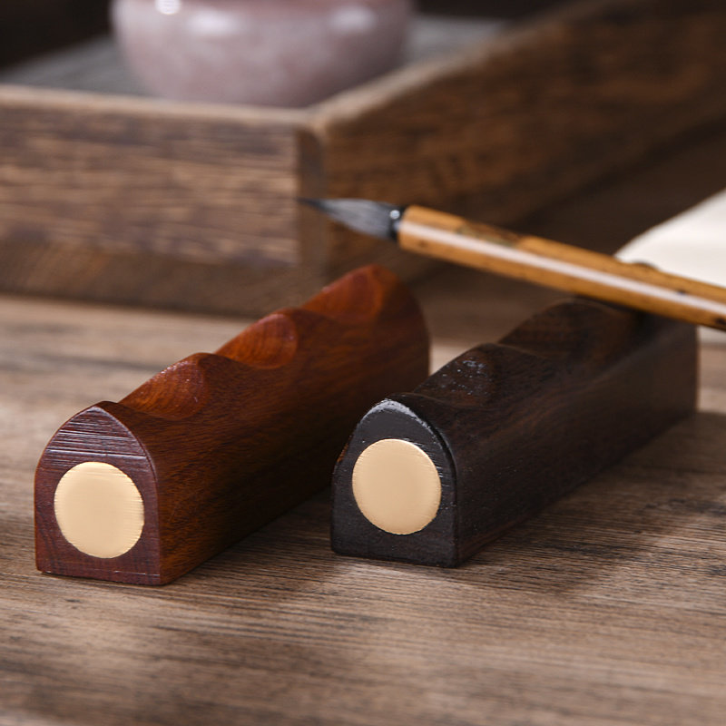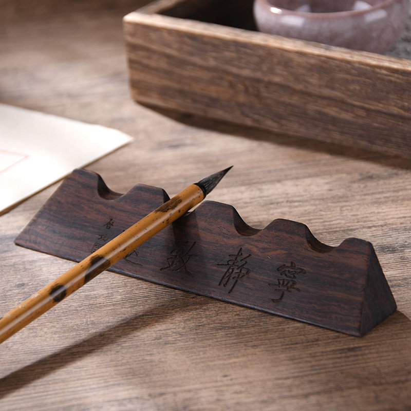 成竹堂实木毛笔笔架笔挂笔搁笔山五指山笔托古风日式托陶瓷创意中国风简约红木放毛笔小笔台文房四宝书法摆件