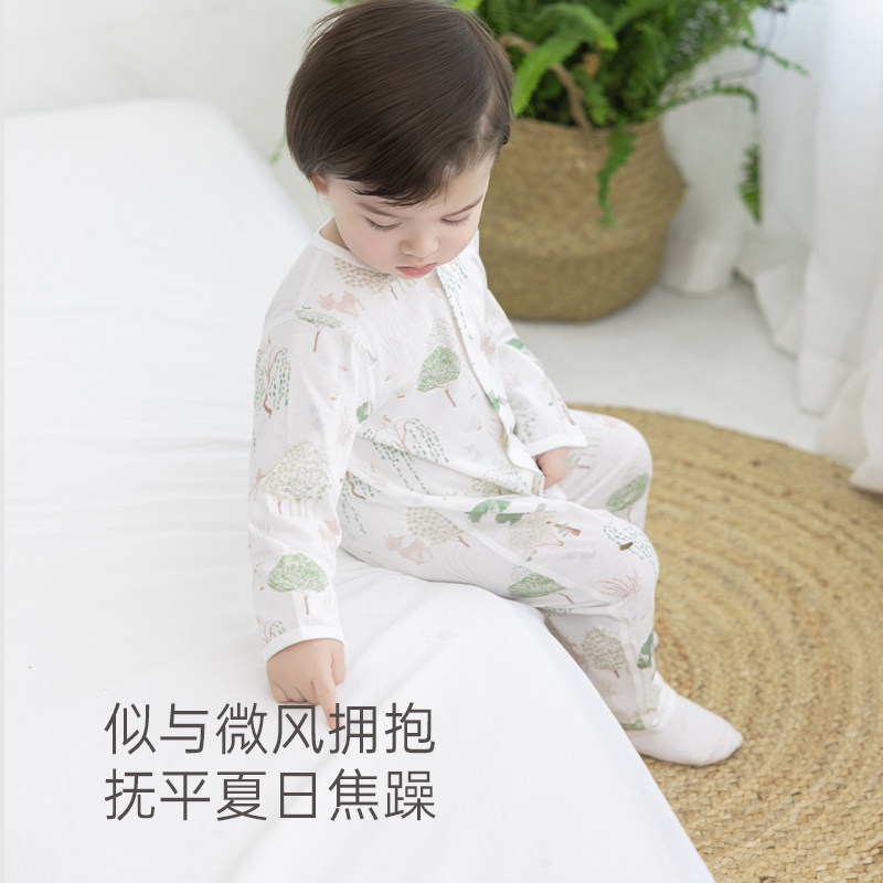 木生棉婴儿长袖连体衣夏季薄款男女宝宝透气哈衣纯棉爬爬服空调服