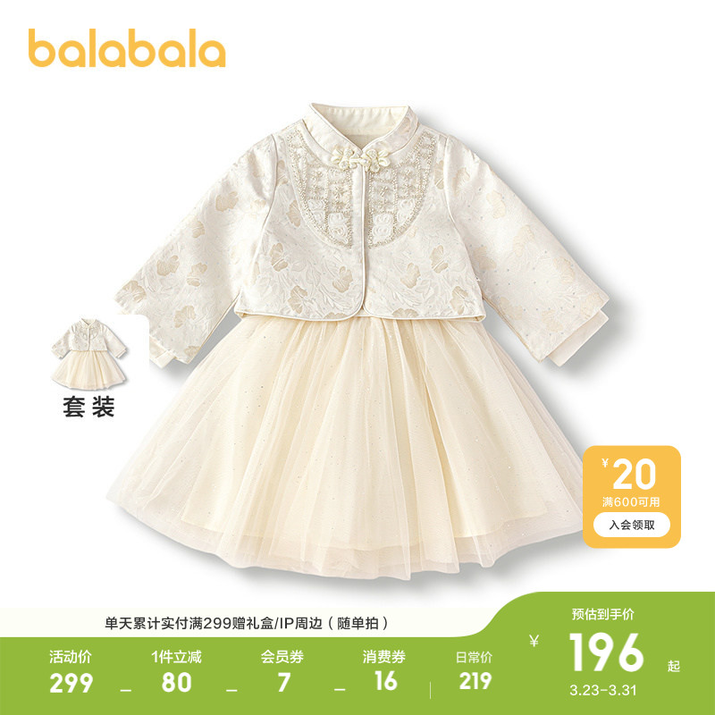 巴拉巴拉童装儿童女童新中式套装网纱蓬蓬裙两件套春新款国风洋气