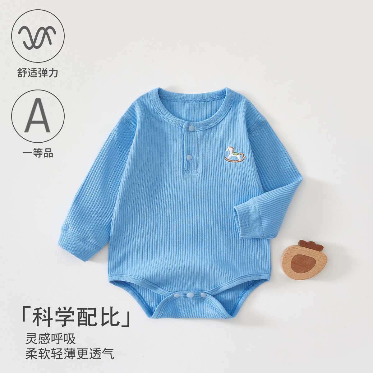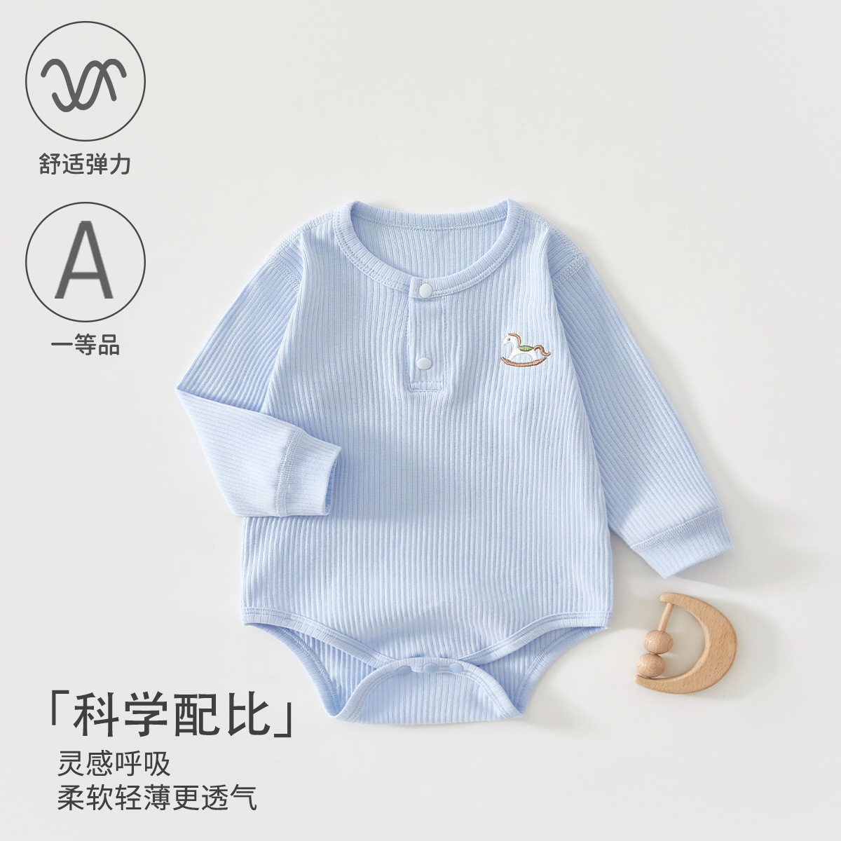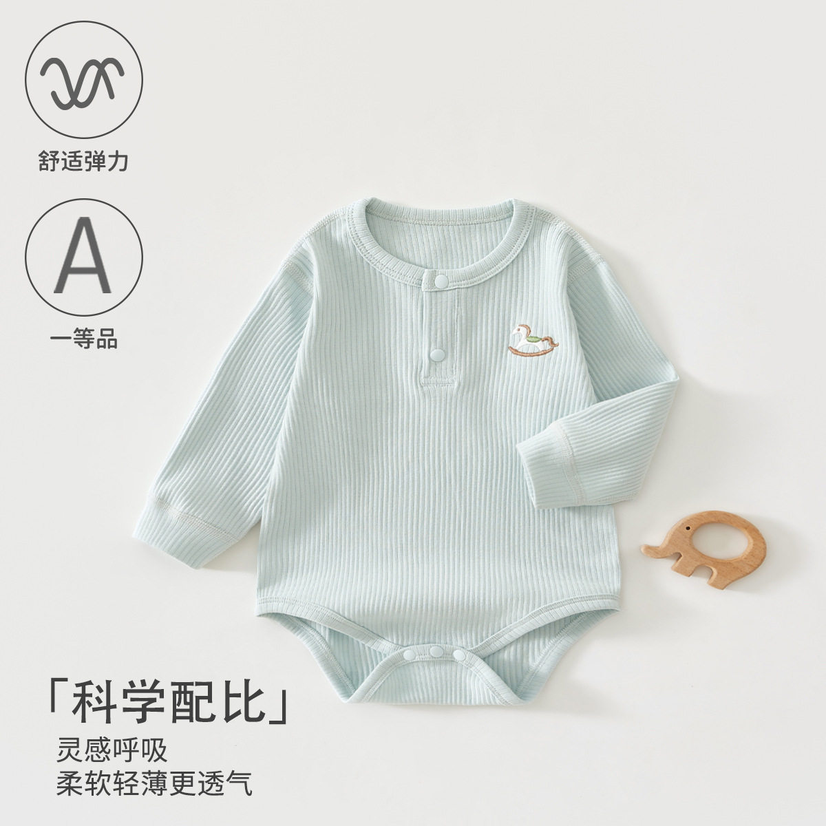 婧麒新生儿长袖包屁哈衣婴儿春秋连体衣宝宝纯棉三角居家服爬爬服