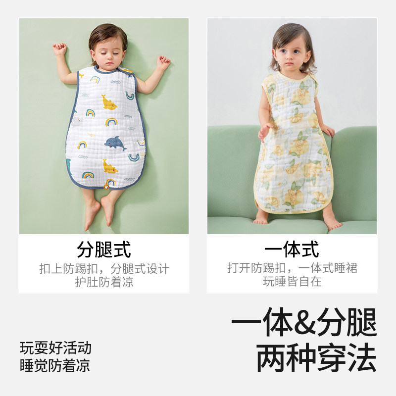 爱贝迪拉婴儿纱布睡袋春夏薄款分腿儿童3到6岁宝宝防踢被四季通用