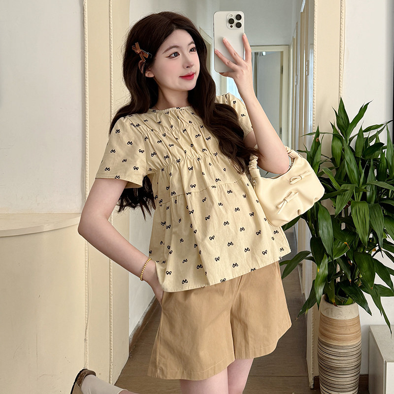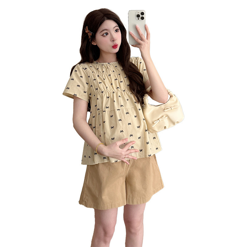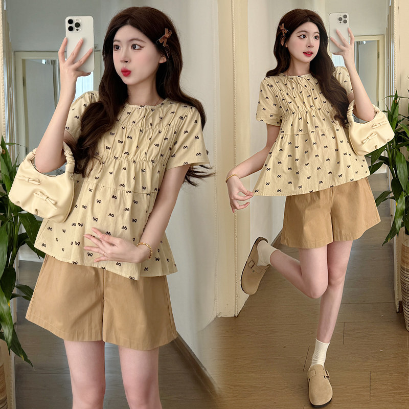 婧麒孕妇套装夏季2026装新款短袖宽松甜美可爱遮孕肚上衣潮妈外出