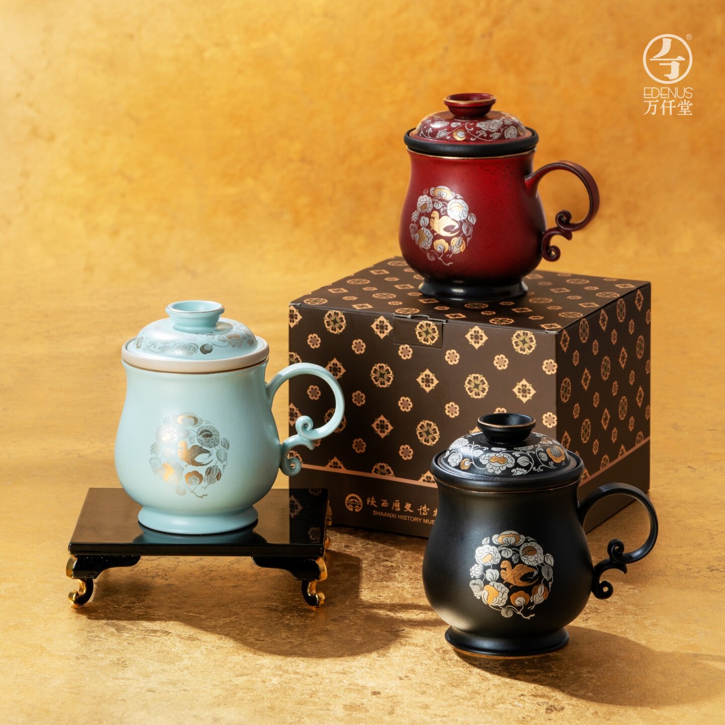 万仟堂联名陕历博陶瓷办公杯茶水分离泡茶杯带盖茶具礼盒大唐茶宴