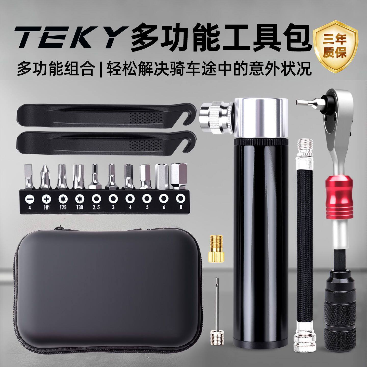 新款自行车维修工具棘轮套筒扳手组合撬胎打气筒多功能工具包配件