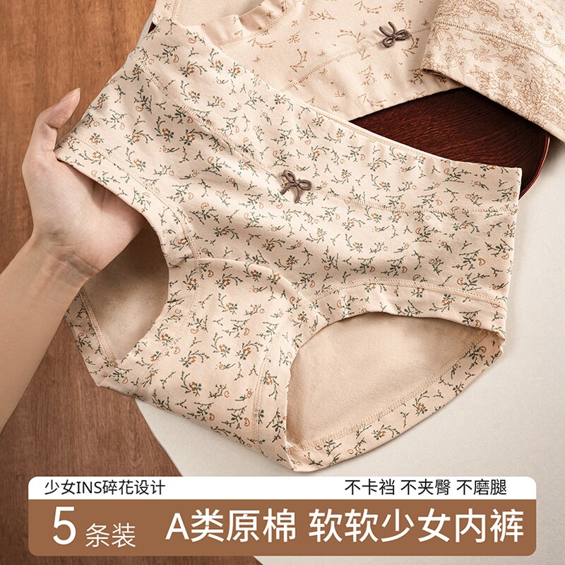 内裤女生纯棉抗菌100%全棉裆2023新款日系无痕透气女士中腰短裤