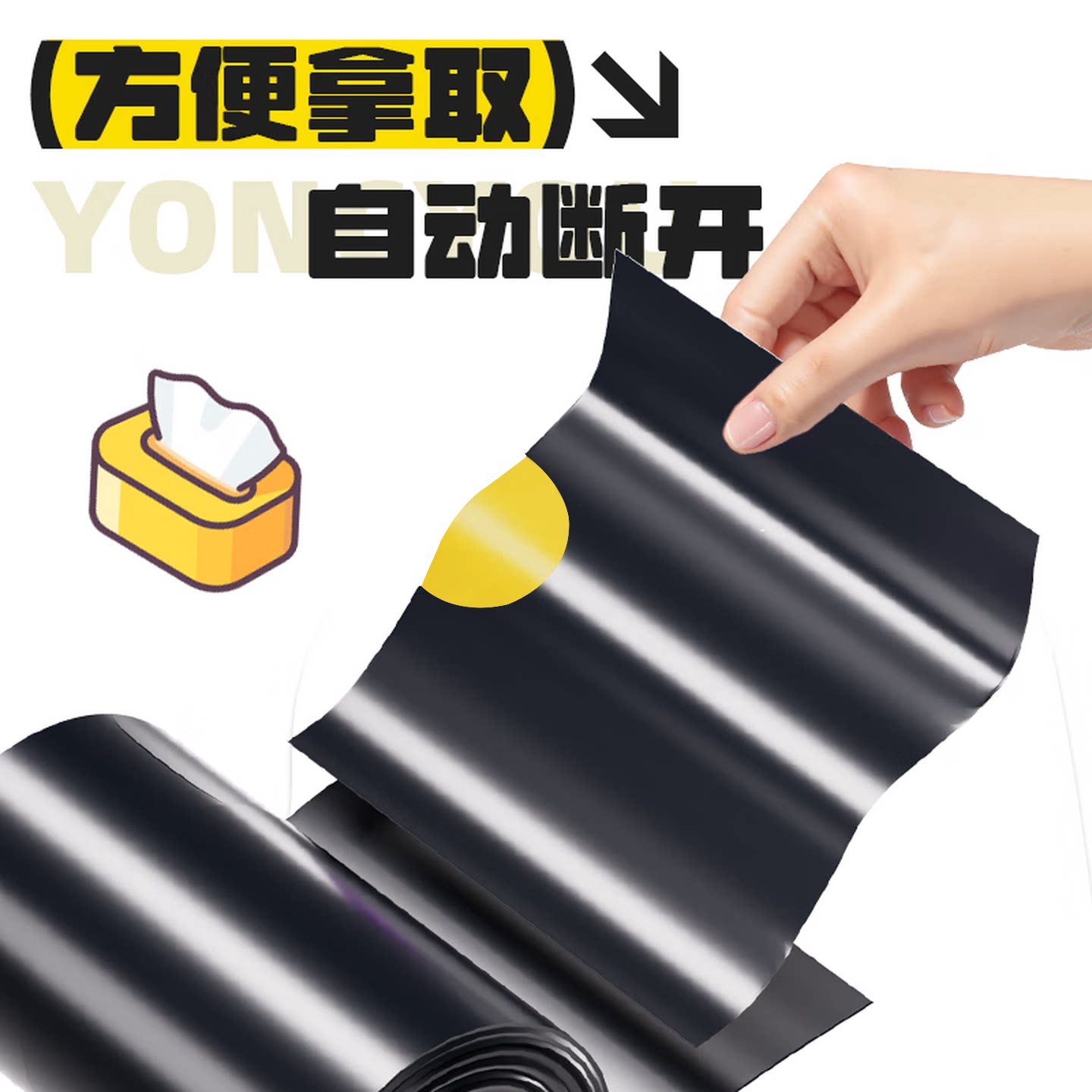 3知洁加厚大号免撕抽绳垃圾袋挂抽取式家用黑色特厚卫生间清洁袋