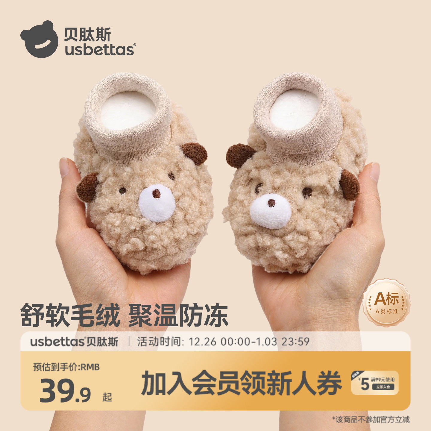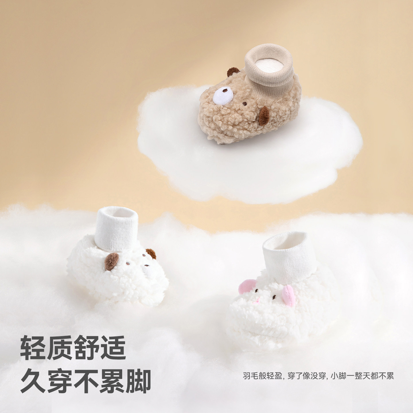 贝肽斯婴儿脚套秋冬新生儿睡觉鞋袜小月龄宝宝保暖外出步前鞋子S