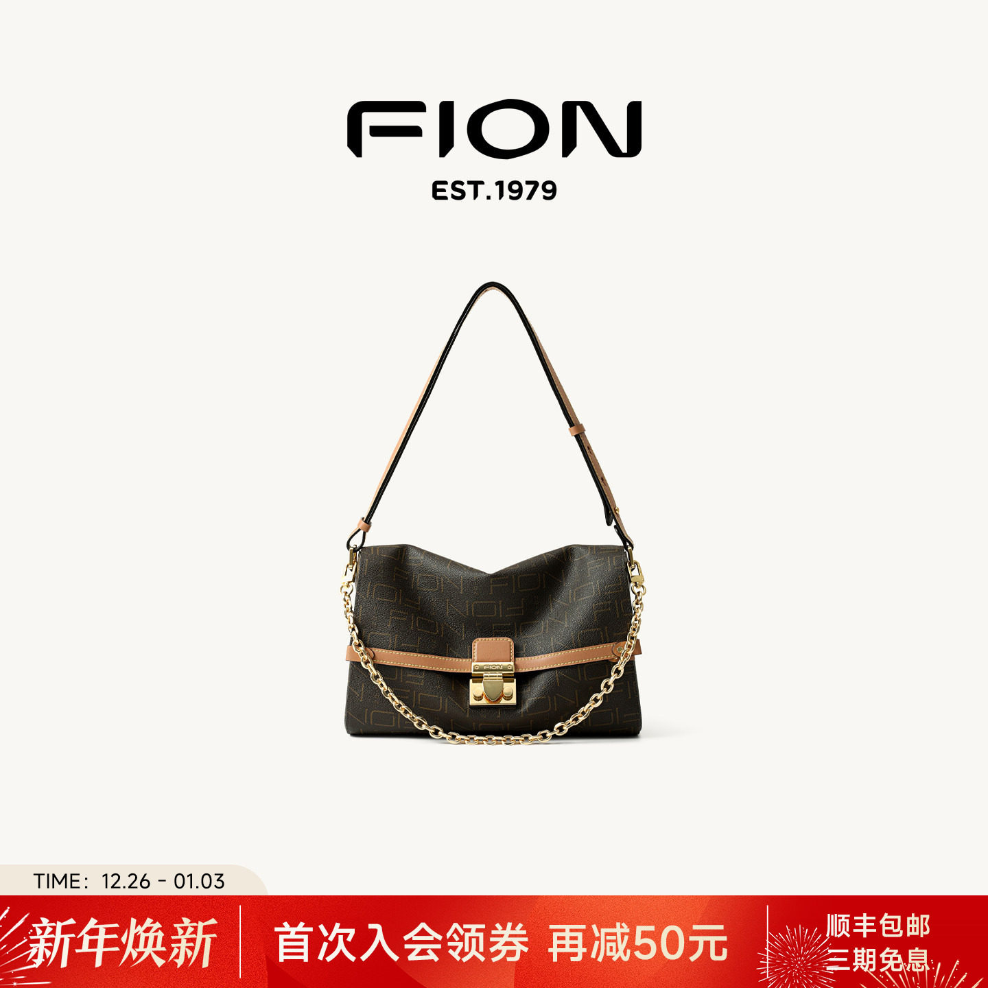 Fion/菲安妮波士顿包经典老花小方包2025新款复古单肩斜挎女包包