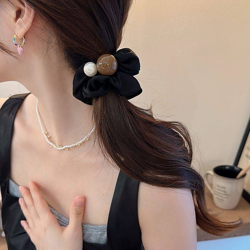 韩系缎面高级感珍珠大肠发圈网红新款扎头发低马尾丸子头皮筋头绳
