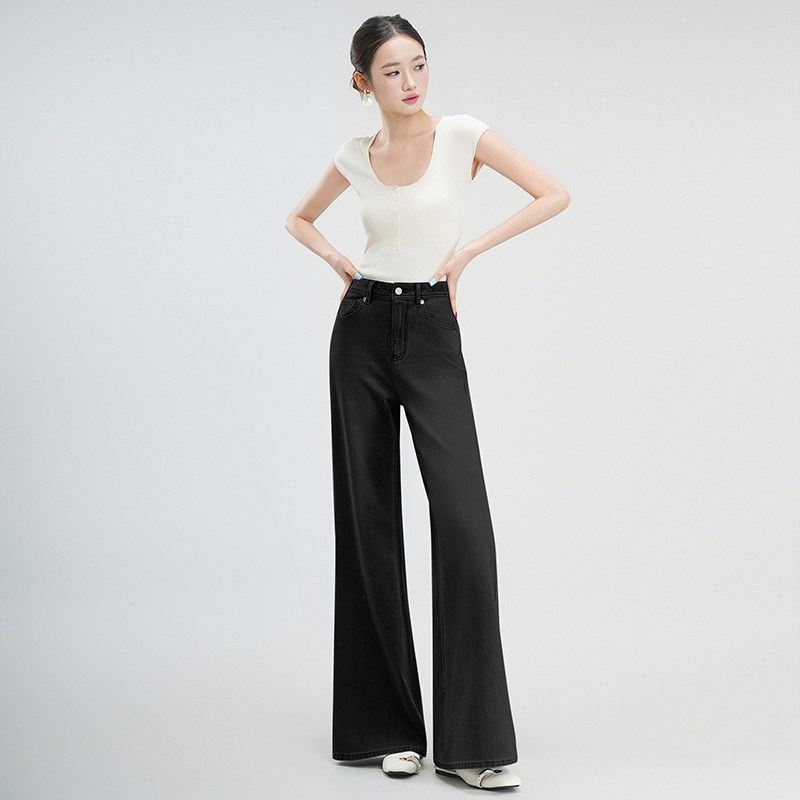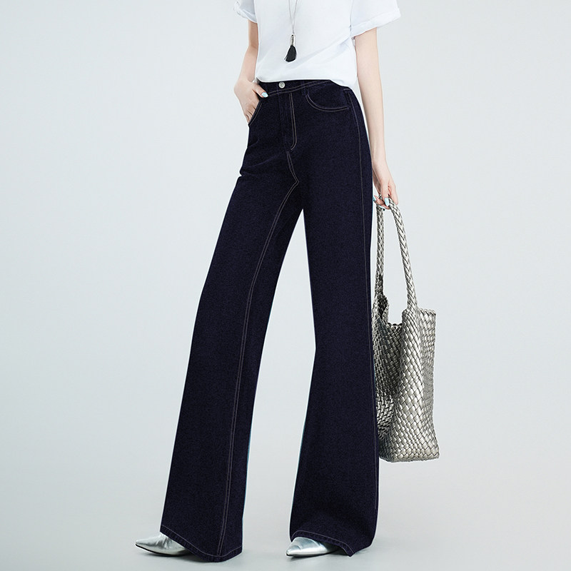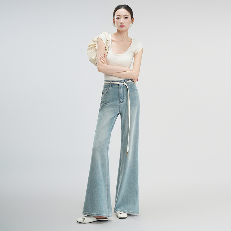 四面弹丹宁色牛仔阔腿裤25年新款宽松显瘦牛仔长裤89173