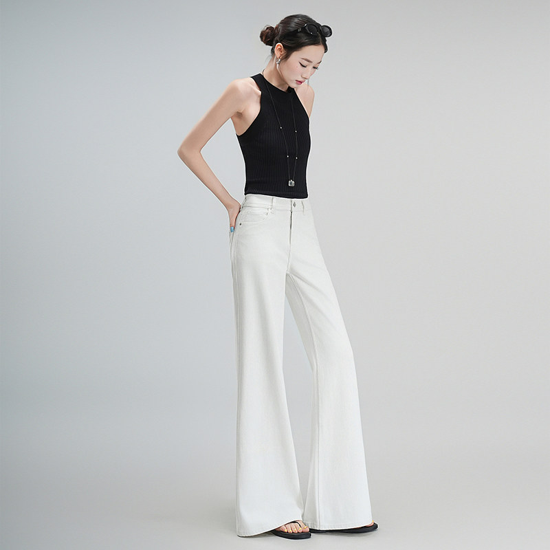 森柔牛仔|森马阔腿牛仔裤女2025秋冬白色牛仔裤简约女士高腰裤子